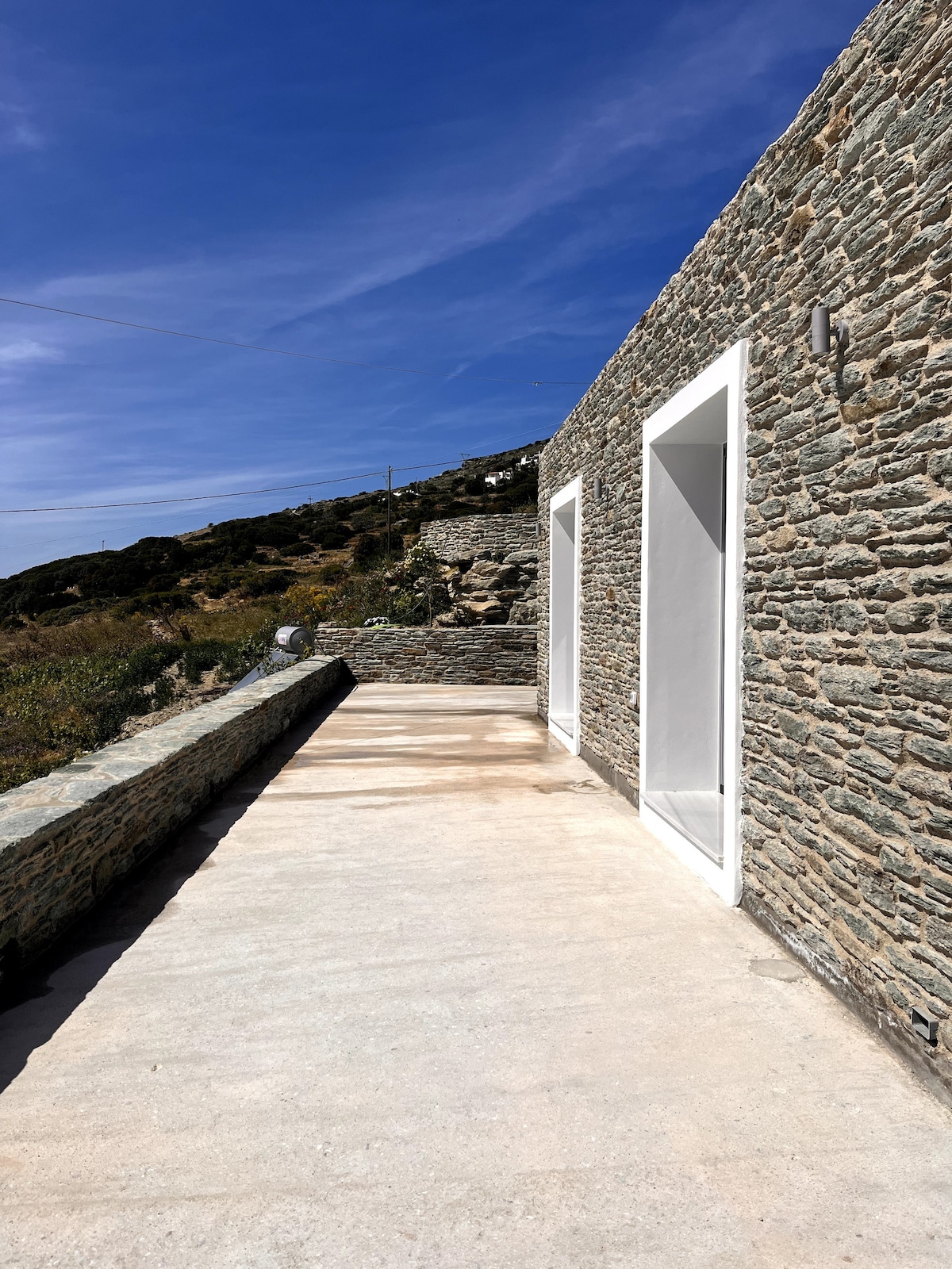 Et traditionelt gammelt Kykladisk stenhus i Aprovatou med udsigt over det uendelige blå, som vi for nylig restaurerede uden at ændre trækkene ved dets oprindelige konstruktion, der går mange, måske flere århundreder tilbage. Huset ligger ved siden af vores faderlige hus på en gård på 10 hektar med cistern, vingård, oliven, citroner, appelsiner og andre afgrøder. Den unikke andriske arkitektur kombineret med den varme velkomst, det høje niveau af personlig service gør boligen meget speciel.