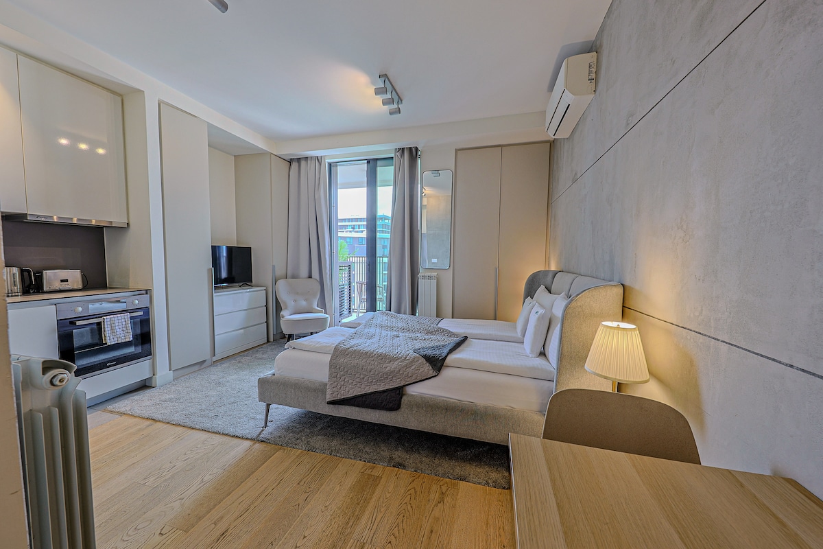 Velkommen til vores moderne lejlighed i Beograd Waterfront, ideel til et mindeværdigt ophold. Den har et soveværelse, en stue og et køkken med de nyeste apparater, der komfortabelt kan rumme op til 4 gæster. Nyd faciliteter som en swimmingpool, fitnesscenter og legerum til børn. Dens førsteklasses beliggenhed giver adgang til adskillige restauranter, caféer og et indkøbscenter samt mulighed for afslappede gåture på Sava-promenaden ved floden, hvilket sikrer en ægte byoplevelse med naturlig skønhed.
