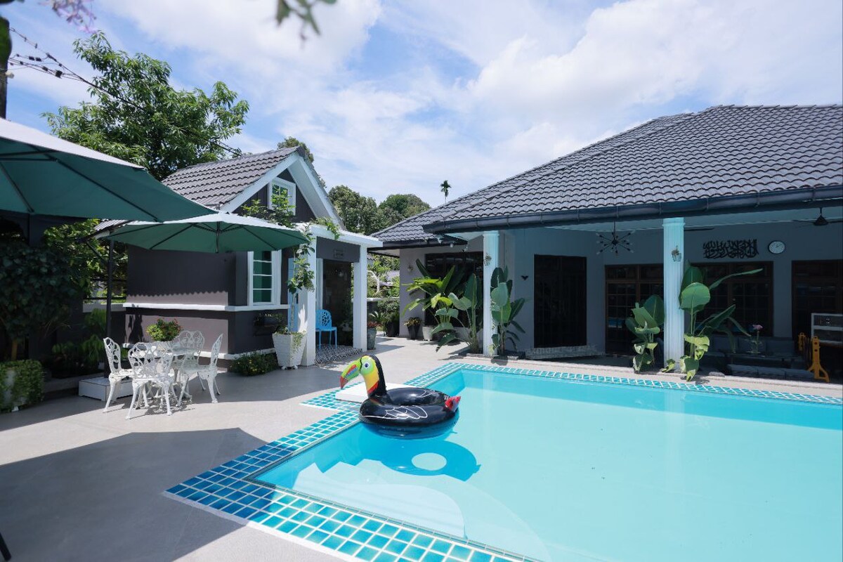 Experience an unforgettable getaway at our humble chalet, surrounded by the beauty of a lush nature garden. Complete with a private pool, BBQ area, patio, hammock, and outdoor dining space. It's the perfect retreat for families, friends, or anyone seeking peace, comfort, and a touch of nature