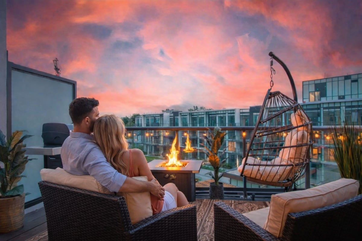 Velkommen til vores mest dramatiske og romantiske Penthouse Spa Getaway Suite! Genopret forbindelsen med din elskede, eller fejr den særlige milepæl i vores professionelt designede spa-suite, hvor du kan bruge alle dine sanser. Denne udflugt vil få dig til at føle dig forfrisket og forynget. Hyg dig ved et af de tre brændeovne, og rens og detox derefter i din egen private infrarøde sauna. Tilbered et gourmetmåltid i vores fuldt udstyrede kokkedrømmekøkken, og brug året rundt Weber-grillen til at grille.