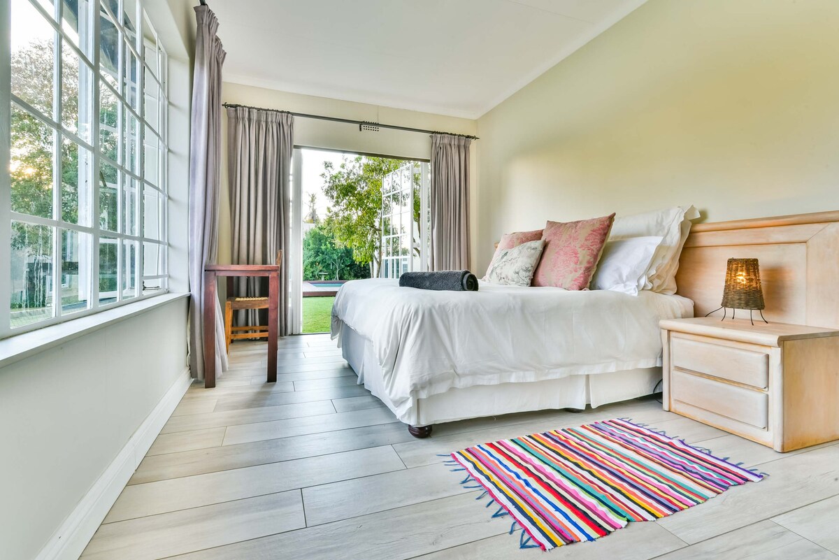 En privat selvstændig lås-op og gå gæstesuite med ubegrænset 24/7 adgang. 2,5 km fra Unisa, 10,2 km fra Monash University, 12,3 km fra University of Johannesburg (UJ) og 16 km fra University of the Witwatersrand (Wits). Gæster behøver ikke at dele nogen områder i boligen med nogen medlemmer af husstanden, da det er en helt uafhængig enhed, selvom den er beliggende i hovedhuset. De eneste fællesområder er udenfor i haven og ved poolen.