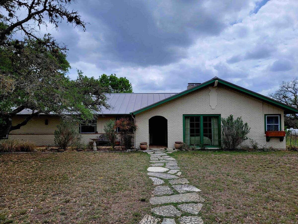 Oplev en rolig "tilbage til naturen"-ferie! Spektakulær udsigt og masser af dyreliv. Romantisk, afsondret i et pænt indrettet hus med alt, hvad du har brug for! Nyd lokale vingårde eller se whitetail hjorte, bæltedyr, ræve, vilde grise og South TX sjældne fugle på ejendommen! De fleste gæster kommenterer stilheden og stjernerne på himlen! Vandre på vores areal, besøg vingårdene, tag på dagsture i nærheden eller bare slap af!