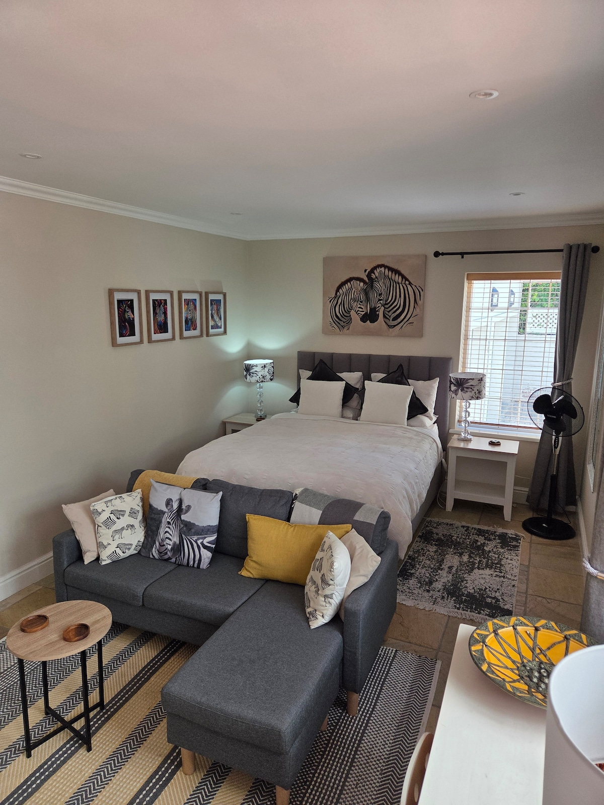 En stilfuld centralt beliggende gæstehytte i hjertet af Kenilworth Upper i et sikkert kompleks. Med en lukket privat have, separat indgang, parkering væk fra gaden og ekstra lang queensize-seng. Tæt på større motorveje, Cavendish Square Shopping Centre, Claremonts forretningskvarter, et stenkast fra livlige Harfield Village med restauranter, nærbutikker og pubber. Til backup ved strømafbrydelser har vi en UPS til wi-fi, tv og et genopladeligt lys.