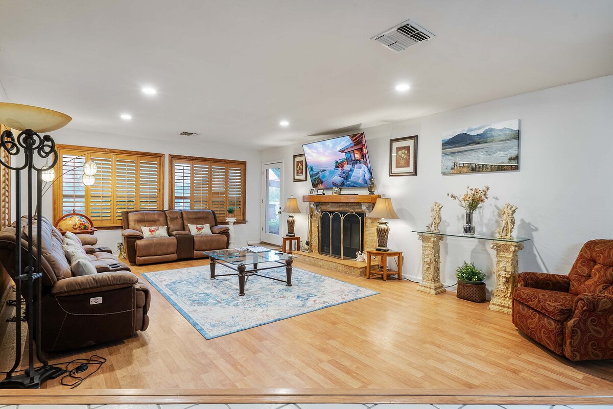 **Nyligt opdateret** Denne ejendom, der ligger for enden af en blindgyde i et roligt kvarter, er et paradis for dem, der nyder udendørslivet. Baghaven har græs og plads til at løbe. Den overdækkede terrasse har en naturgasgrill, et spisebord og en bålplads. Så er der den helt indhegnede, opvarmede pool og jacuzzi. Soveværelserne er alle udstyret med et smart-tv. Masser af faciliteter!! Dit perfekte andet hjem. Rabatter til rådighed for virksomheds- og erhvervsboliger. Send os en besked!