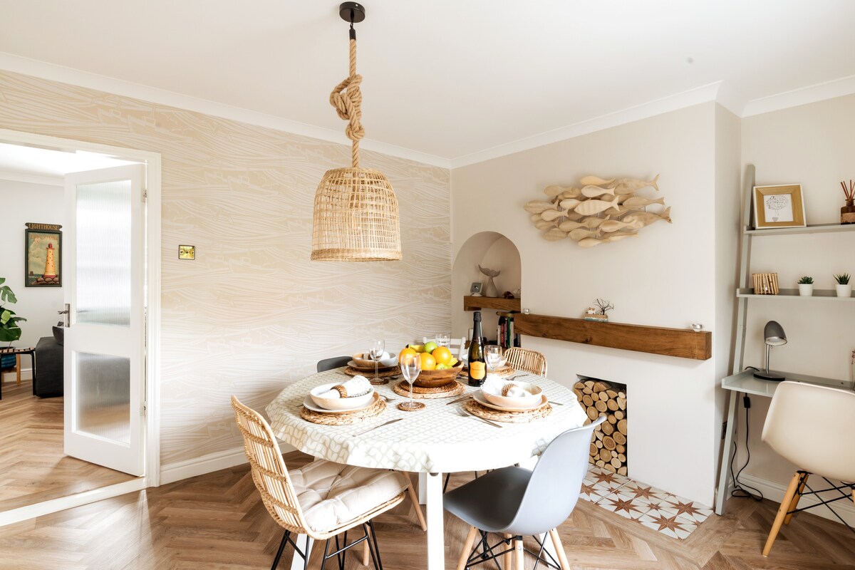Historisk 3-værelses fiskerhytte ved havet med hurtig wi-fi, alle moderne bekvemmeligheder (projektor, vintage stereo, PS5, Sonos, velassorteret køkken), masser af karakter, fremragende beliggenhed for strand og lokale attraktioner. "Sikke et smukt sted, du har skabt her. Jeg har haft et vidunderligt, fredeligt vinterophold, meget behageligt, og jeg har fået skrevet meget. Mange tak." – Chris, januar 2022 Se venligst "andre oplysninger, der skal bemærkes", inden du booker boligen. Vi vil meget gerne byde dig velkommen!