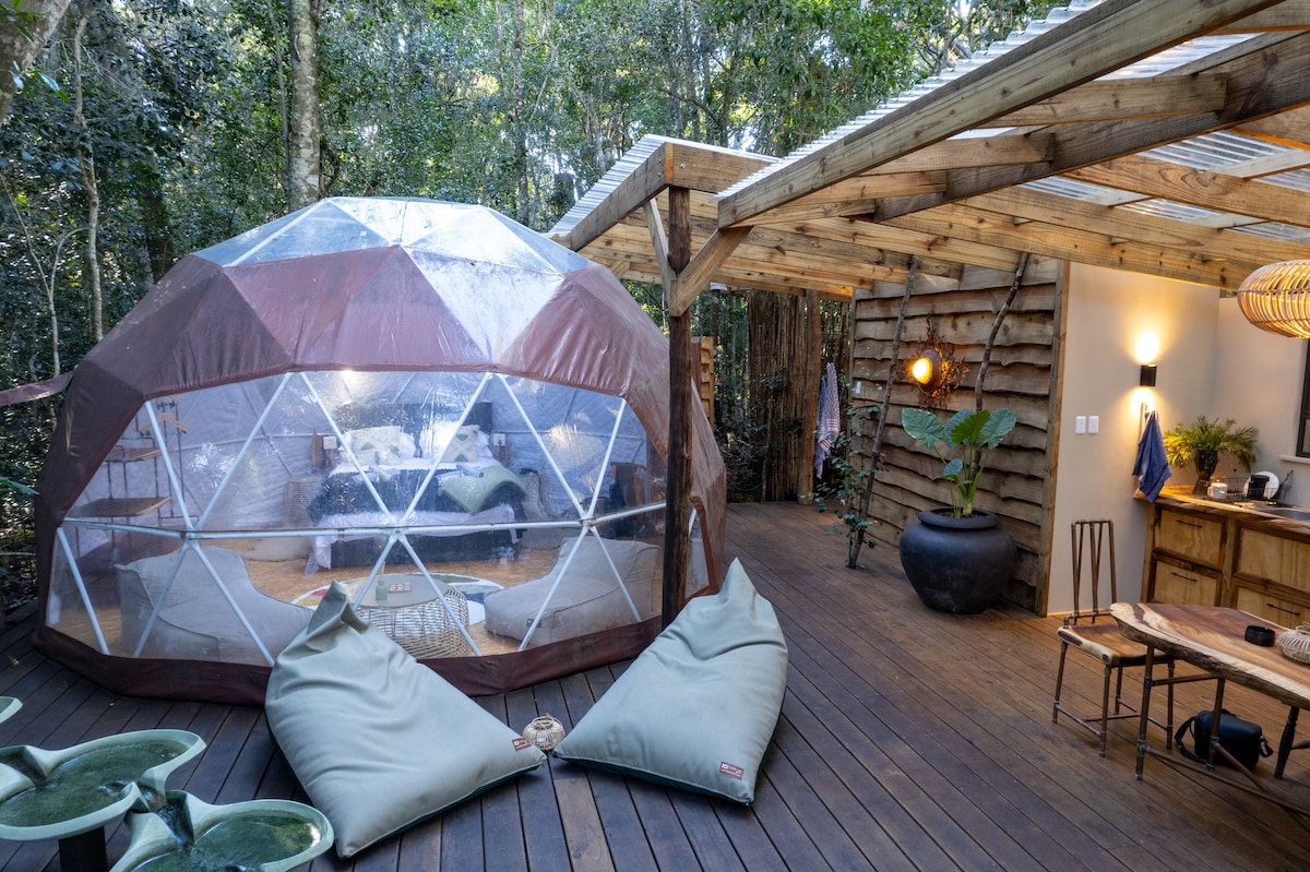 Flygt ud i naturen på en unik måde med vores afsidesliggende skovferie. Vores kuppel ligger i hjertet af en urskov i Garden Route og tilbyder en perfekt blanding af luksus og vildmark. Vores kuppel er smukt designet til komfort, og det overdådige udendørs opholdsområde passer perfekt ind i naturen, hvilket opmuntrer gæster til at genoprette forbindelsen, slappe af og genoplade. Selvom vi meget gerne vil byde alle velkommen, er omgivelserne ikke børnevenlige og tilbyder helt sikkert en mere vidunderlig udflugt for to.