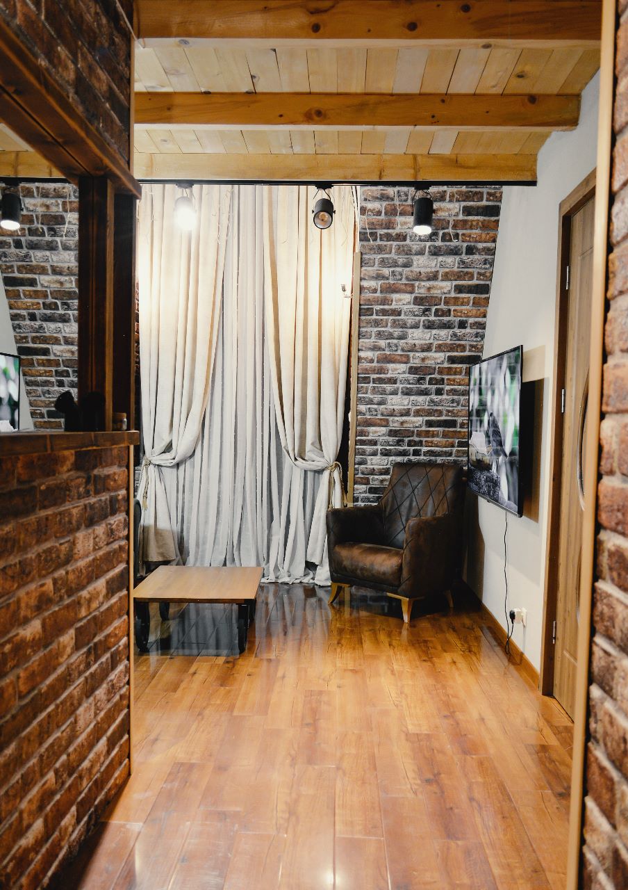 Dette charmerende, rustikke hus i Telavi tilhørte engang mine bedsteforældre og blev bygget i begyndelsen af det 20. århundrede i autentisk georgiansk stil ved hjælp af store flodsten, røde mursten og med en rummelig træbalkon. Herfra kan du nyde en fantastisk udsigt over Telavis gader og betagende kaukasiske bjerge. Under vores renovering sørgede vi for at bevare boligens oprindelige stil og indretning.