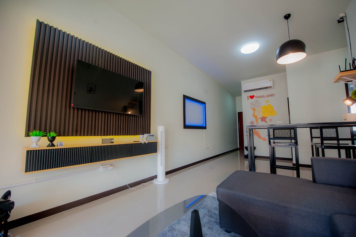 Forget your worries in this spacious and peaceful place. 5 minutes from Trang airport, 10 minutes from the city center and 45 minutes from the national park with many beautiful beaches. From the marina you can go by boat to many of the beautiful islands (Koh Kradan, Koh Lipong, Koh Lipe etc...). This is a great place for relaxation with family and friends. possibility of 2 extra beds in the living room total 6 people MINIMUM 2 NIGHTS Long term rental possible on request