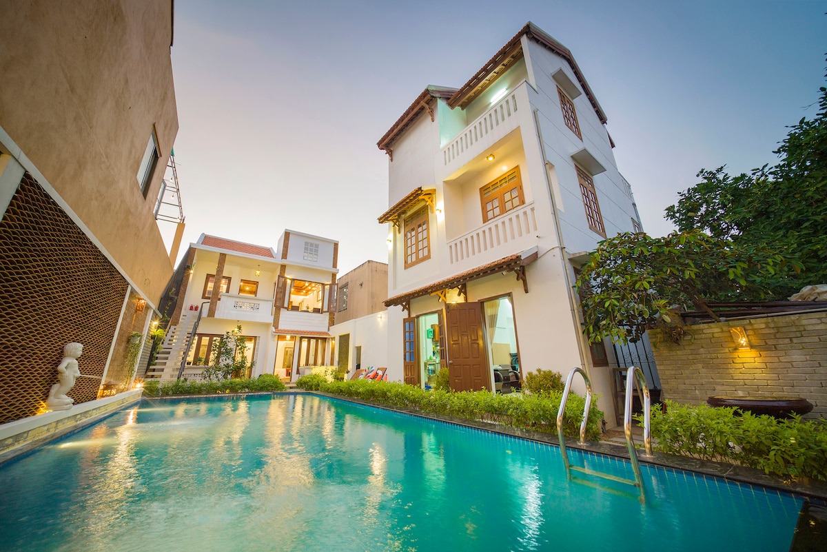 Ny villa med luksus som et hotel og gæstfrihed fra en lokal vietnamesisk familie. - Privat badeværelse - Altan i rummet - Køleskab på værelset - Swimmingpool på taget - Rolige omgivelser med udsigt over rismarker - Gratis cykel - Morgenmad med særlige lokale fødevarer, te eller kaffe og frugt - 10 minutter fra både den gamle by og stranden - Gratis kaffe/te/vand dagligt - Leje til rådighed - Rundture tilgængelige - Vinmart 100 meter - Restauranter og caféer 100 meter - Lokalt beboelsesområde