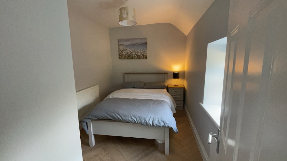 Hvis du nogensinde har ønsket at opleve den gamle charme i en traditionel irsk hytte uden at kompromittere moderne komfort, er dette stedet at besøge. Det ligger afsides og er omgivet af et hektar land, der giver dig ro og privatliv. Det rustikke interiør består af et fuldt udstyret køkken på landet, et lille arbejdsværelse, stuen har tv og et støbejernskomfur. Der er tre soveværelser. En med en dobbeltseng med fire plakater, et dobbeltværelse og et værelse med en enkeltseng.