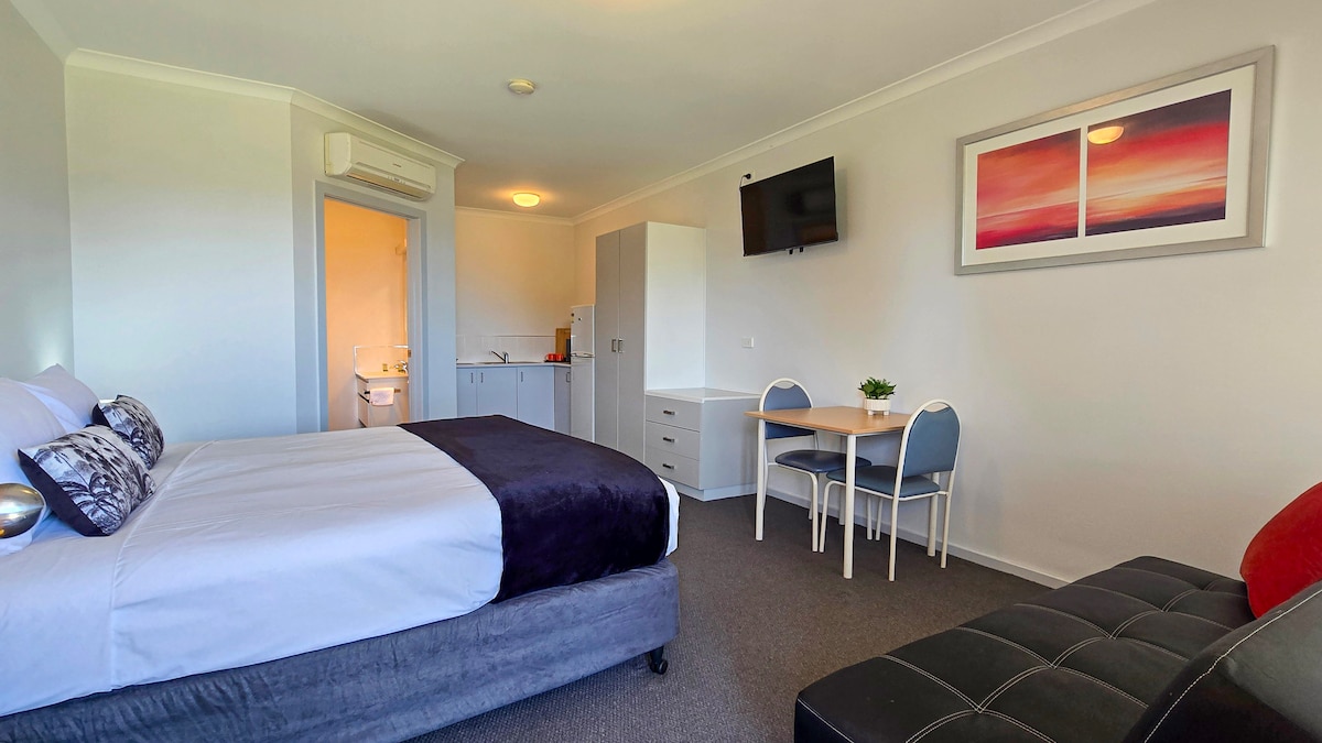 Denne smukt præsenterede selvstændige lejlighed er et hjem væk hjemmefra. Fra al luksusen i en super kingsize-seng til et 75 tommer tv med Foxtel inkluderet, vil det få dig til at føle dig meget tryg ved at sidde på den bløde sovesofa... Med den populære Black Fig købmand/café kun 30 sekunders kørsel ned ad vejen. Køkkenet har alle de faciliteter, du skal bruge for at tilberede et festmåltid. Vi håber, du nyder det! Bemærk også, at der er parkeringsmuligheder lige uden for indgangen til lejligheden.
