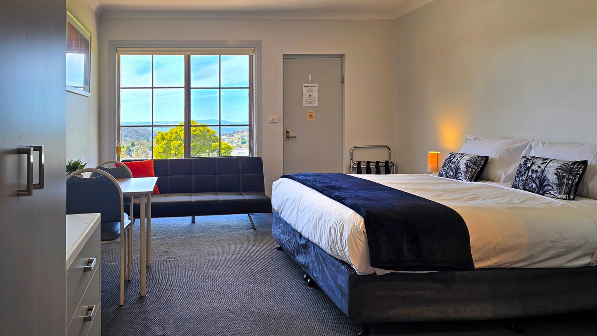 Rummelig, komfortabel, lys og luftig 1-værelses lejlighed med en eklektisk indretning med moderne og antikke møbler. Store vinduer, så du kan få glæde af den fantastiske udsigt og solen. Stille og afsondret, men tæt på, hvor det sker. Kun 5 km fra Hobart centrum og endnu tættere på Battery Point og Salamanca Place. Kun 1,5 km fra University of Tasmania. Ideel til par eller 3 personer, der rejser sammen. Komfortabel, stilfuld, varm, privat indkvartering med kvalitetsindretning og -faciliteter.