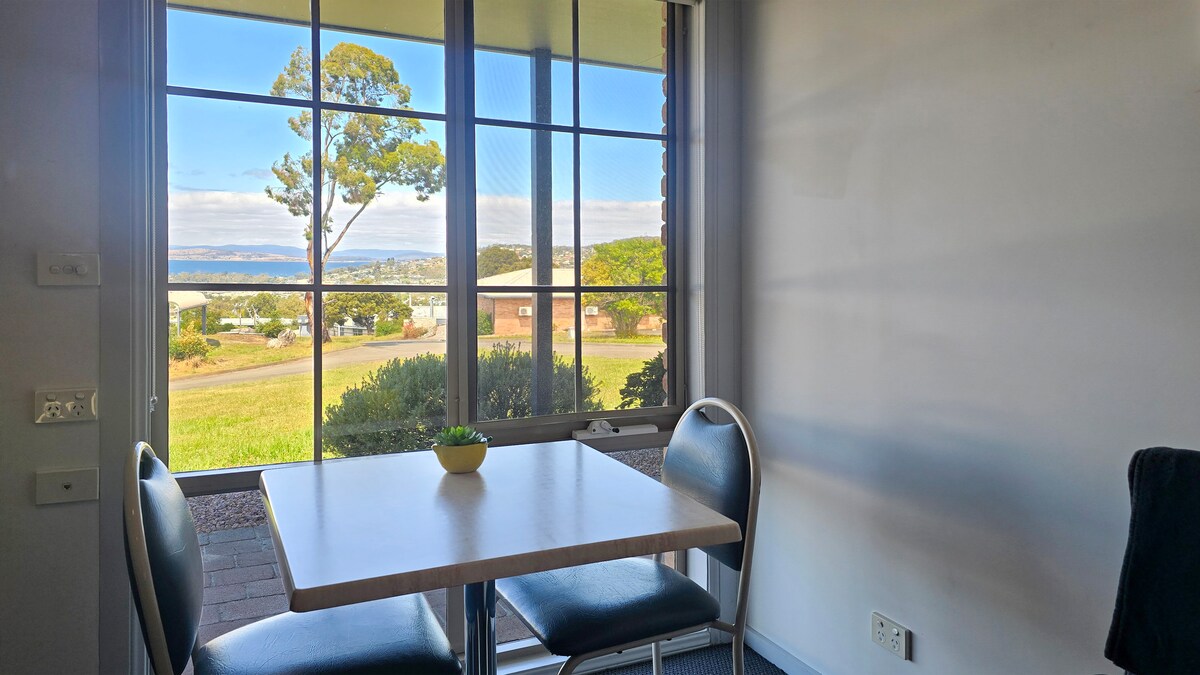 Fredfyldt beliggenhed med en dejlig udsigt over Kingston Beach og Derwent River. 15 minutter fra byen og kan være en kort gåtur til stranden og en kort køretur til restauranterne og butikkerne. Denne lejlighed er adskilt fra huset, er hyggelig, sikker og rolig, perfekt til et afslappende ophold i området. Uanset om det er at sidde og slappe af på terrassen med en vin og bog, er denne lejlighed det perfekte sted for dig. Hurtig ubegrænset WiFi og Smart TV . Fuldt udstyret køkken, morgenmad medfølger ikke.