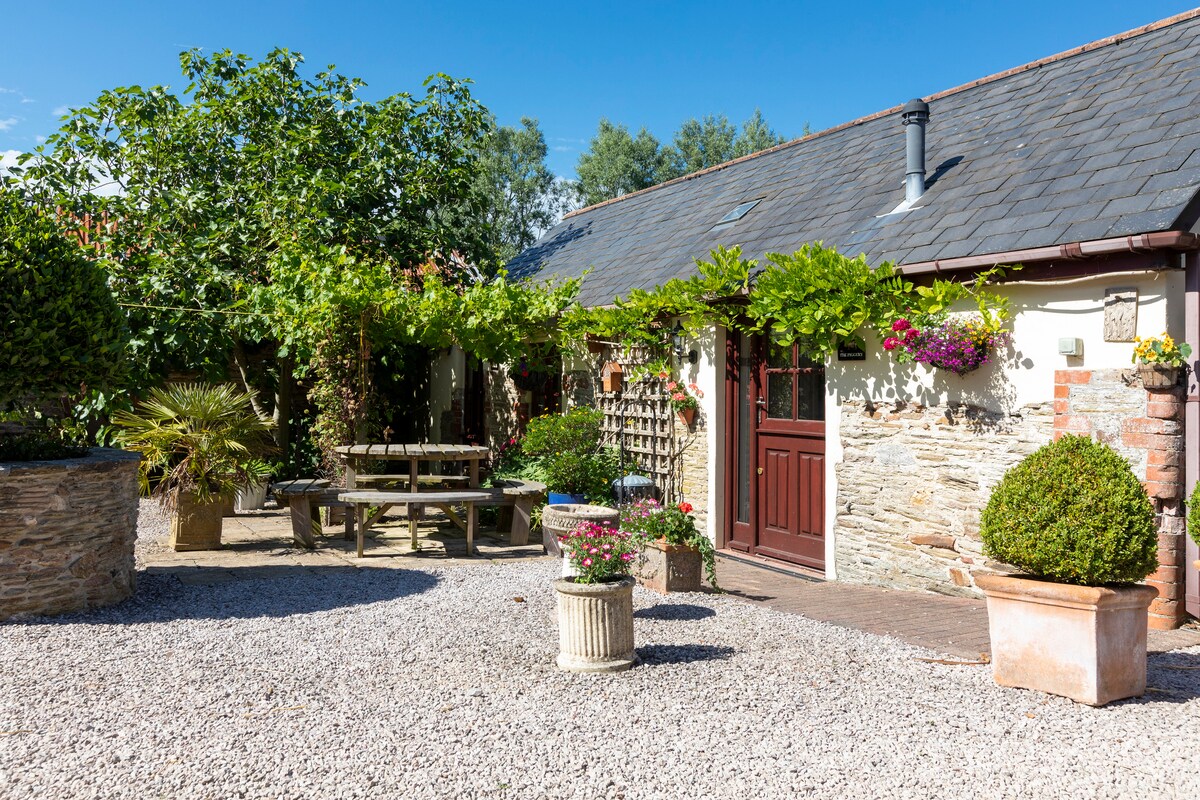 Tag på udflugt til landet, og find tilflugt i vores to hundrede år gamle, nyrenoverede toværelses hytte, der ligger for enden af en fredfyldt gårdsplads med en afsondret og fortryllende privat have og udsigt over græsgange, der løber ned til havet og de fantastiske strande i South Devon.