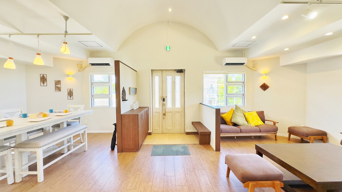 Et særligt overnatningssted, hvor du kan føle dig hjemme ved havet. Du kan høre lyden af bølgerne, og du kan hoppe ud af stuen, og du vil se en privat strand lige foran dig! I modsætning til store hoteller vil jeg kun have, at du føler den afslappede "ø-tid" i Okinawa Stå tidligt op om morgenen, se solopgangen fra horisonten og gå en tur på stranden. Spis på dækket, hvis vejret er godt. Det er et luksuriøst øjeblik at få morgenmad og tænke på en dags tidsplan. Det er også bedre at købe lokale ingredienser og lave mad i nærliggende supermarkeder og butikker end normalt.Om aftenen kan du sludre med din dyrebare familie, mens du kigger på stjernehimlen... Din rejse venter på, at du glemmer din tid. Åbn venligst døren nu!Forhåbentlig bliver det dit andet hjem... (*I jeg vil gerne dele min nye rejse med dig, så jeg er tilbage på Airbnb. Tak!)