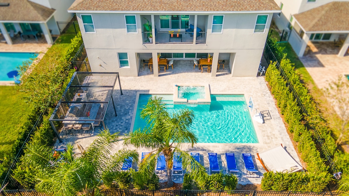 Den perfekte balance mellem STILFULDT DESIGN, LUKSURIØS KOMFORT og UENDTELIG UNDERHOLDNING, smukt beliggende med en fantastisk udsigt i det vidtstrakte 3,5 kvadratkilometer store Reunion Resort. Du får din egen private pool, spillover spa, STAR WARS biograffilmsrum med pinball, klassiske arkadespil og karaoke, MARVEL børneværelse med rørrutschebane og dobbelte køjer, den nyeste Xbox Series S, et stort 2000 ft2 pooldæk, bålsted, og endda et HARRY POTTER skab skjult under trappen, minutter til Disney.