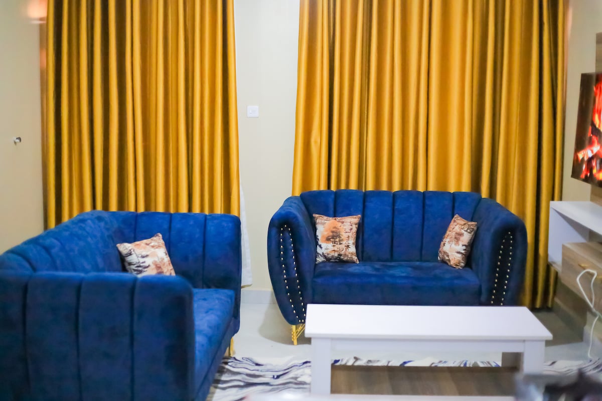 Træd ind i en rummelig, elegant møbleret lejlighed med en komfortabel queensize-seng, privat balkon og hurtig wi-fi til alle dine streaming- og arbejdsbehov. Slap af med et varmt brusebad efter en dag med udforskning, og slap derefter af i den hyggelige, rolige atmosfære i din egen bolig. Lejlighedens moderne møbler og gennemtænkte design giver både stil og komfort. Book dit ophold nu for at få en problemfri og afslappende oplevelse. Kickback, slap af, og nyd alt det, Kisumu og vores lejlighed har at tilbyde.
