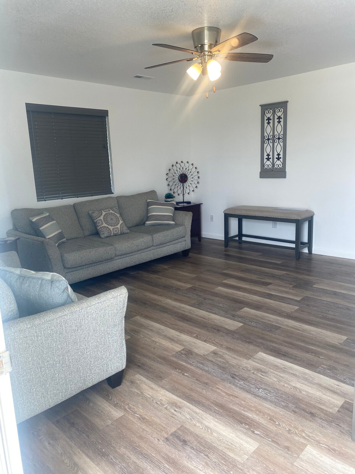 Tag et skridt tilbage fra livets stress og jag. Nyd det fredelige, langsomme tempo i vores rolige lille by. Denne smukke nye bolig ligger lige om hjørnet fra byparken. Nyd en dejlig aftentur, se de fantastiske attraktioner i området, få en bid mad kun 16 km væk. Lav trafik, lav støj og lav stress! Rummeligt opholdsområde, der får dig til at føle dig hjemme. Vi håber, du nyder dit ophold. Læn dig tilbage, og bliv et stykke tid. Der er ikke noget sted, der er helt som det.