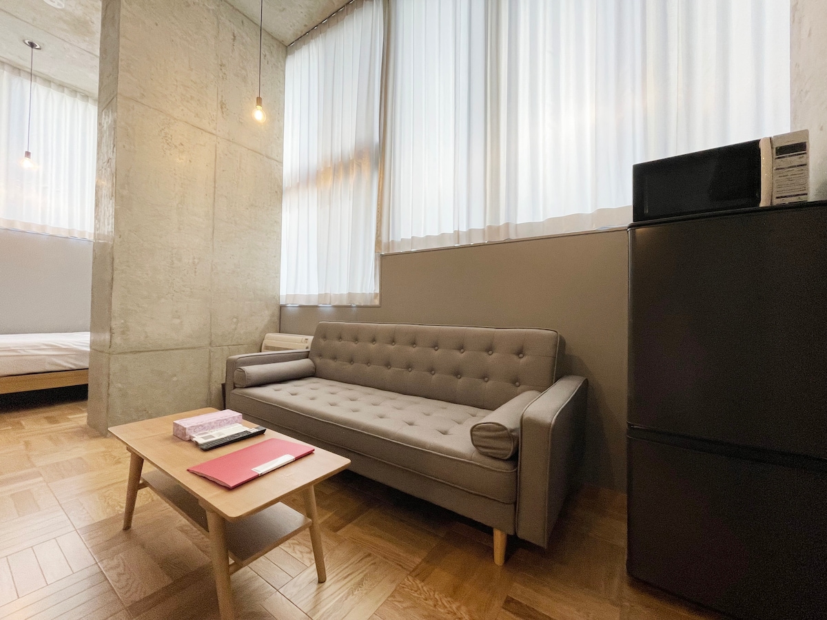 Nybygget med rejsende i tankerne. Værelserne er rummelige med queensize-senge (næsten uhørt i Japan). Smart-tv, Wi-Fi, te og kaffe. Badeværelserne er fashionable, med store gåture i regnbrusere. LED spejle til at få dig klar til uanset belysning, du vil støde på. Værelserne har bar, køleskab, mikrobølgeovn og kedel, så du kan opbevare og tilberede færdigretter og drikkevarer. Alle værelser er udstyret med aircondition, loftsventilatorer og mørklægningsgardiner. Der er også masser af opbevaringsplads!