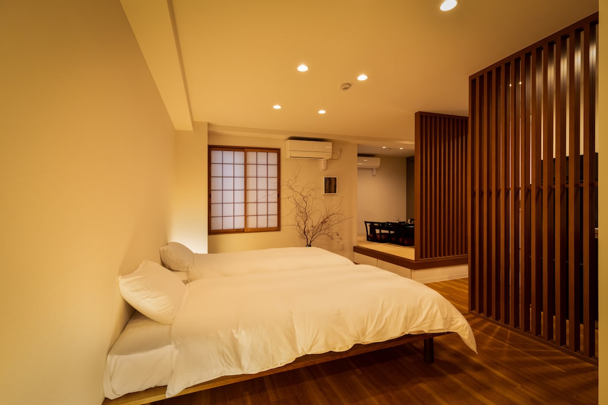For dem, der ønsker at nyde en tur til Kyoto fuldt ud. Det er også en god beliggenhed med god adgang til de vigtigste turistattraktioner i byen, og det vil give et behageligt ophold. Rinn Niomon er et stille, moderne japansk gæstehus beliggende i det kulturelle område Okazaki i Kyoto. Vi tilbyder et ophold i et roligt område, hvor Kyotos kultur er levende, hvor du kan føle Kyotos dagligliv og ro i et miljø, der er et skridt væk fra travlheden. Interiøret er en rolig og komfortabel omgivelse, der samtidig respekterer den japanske atmosfære. Der går en afslappende, fredelig tid mellem ture. Værelset er rummeligt, og det er behageligt for par, familier og længerevarende ophold. Det omkringliggende område er fyldt med kulturelle og kunstneriske steder, der repræsenterer Kyoto, såsom Heian Shrine, Kyocera Museum of Art og Okazaki Park. Nyd alt det, det stille Kyoto har at byde på, såsom morgenvandringer og museumsture. Gion-området er også inden for gåafstand og er bekvemt placeret til sightseeing. Det ligger 8 minutters gang fra den nærmeste station og har god adgang. Efter en spadseretur i Okazaki-området kan du slappe af på dit værelse. Du kan nyde et ophold i Kyoto væk fra travlheden, omgivet af kultur og ro. *Indkvarteringsskat opkræves separat. * Den viste pris inkluderer ikke indkvarteringsskat.