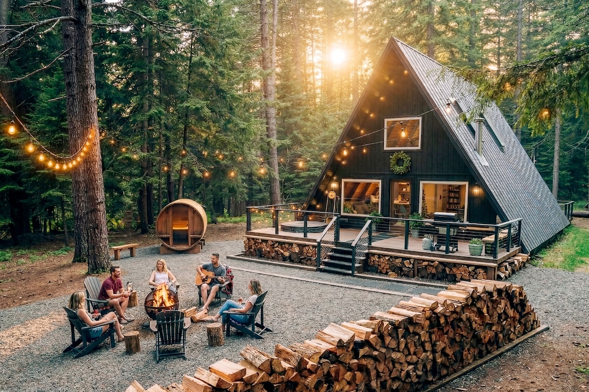 Tag til vores stilfulde A-rammehytte med 2 soveværelser og 2 badeværelser i Cascade Mountains, hvor der er plads til op til 8 gæster. Dette unikke fristed har et privat spabad, tøndesauna og hyggelig pejs. Perfekt beliggenhed nær historiske Roslyn og bredden af Lake Cle Elum. Det er et ideelt tilflugtssted for familier eller grupper, der søger eventyr og afslapning. Nyd moderne faciliteter, fantastiske landskaber og privat adgang til stranden for en uforglemmelig bjergferie.