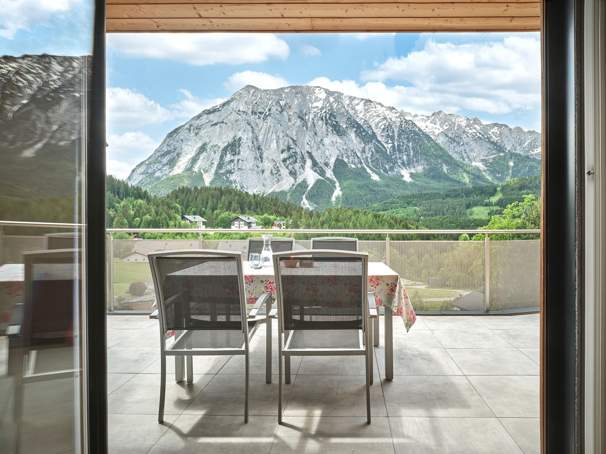 <strong>Cozy holiday apartment for 4 people in Tauplitz, Austria. A fantastic view in the Salzkammergut!</strong><br>Perfect for a relaxing holiday for two or with the family: This beautiful, tastefully furnished holiday apartment in Tauplitz offers 64 m² of space for up to 4 people and impresses with its sunny character and breathtaking view of the mountains of the Salzkammergut in Austria.<br><br>