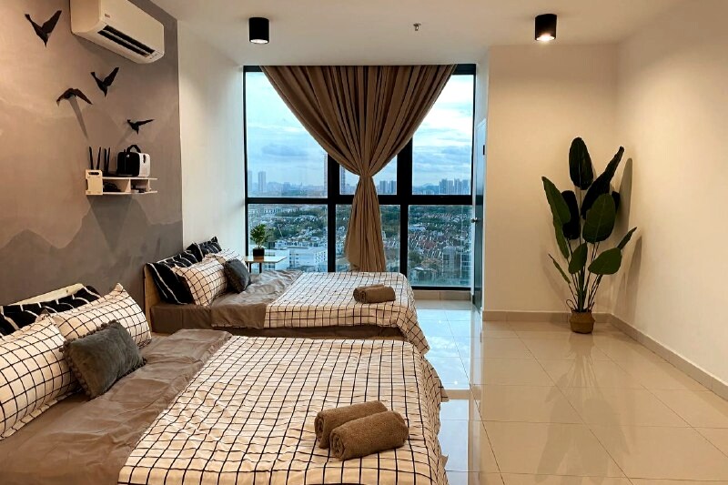 Hyggelig og rummelig lejlighed med moderne faciliteter. Vores enhed ligger på 18. sal, der tilbyder smuk by- og bjergudsigt over Puchong og rummer op til 11 gæster. Perfekt til forretningsrejsende, familieophold og forældre, der ønsker at knytte bånd med deres små i et afslappende miljø. Praktisk beliggende i hjertet af Puchong, giver det nem adgang til restauranter, en biograf, nærbutikker, supermarkeder, LRT, IOI Mall, Sunway Pyramid, Sunway Lagoon, Pavilion Bukit Jalil med mere.