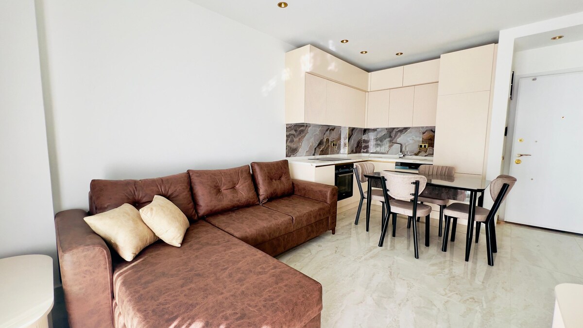 Velkommen til vores hyggelige lejlighed i centrum af Alanya. Lejligheden er kun 1 minut til havet, restauranter og butikker. Komplekset har en smart terrasse med 360 graders udsigt over hele byen. Grill, jacuzzi, opholdsstue, liggestole - alt sammen for et uforglemmeligt ophold! Komplekset har også en swimmingpool og et fitnesscenter, samt den bedste hammam i byen! Lejligheden er udstyret med alle de nødvendige apparater ( vaskemaskine, komfur med ovn, opvaskemaskine, kedel, TV).