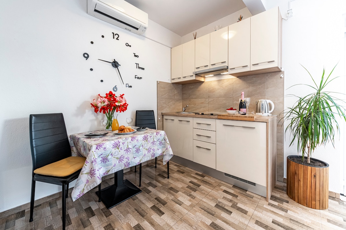 Moderne og hyggelig studiolejlighed i Cavtat med den private terrasse giver dig mulighed for at tilbringe din ferie meget tæt på det historiske centrum og langt nok væk til at nyde freden om natten, da den er haveorienteret. Det er perfekt til solorejsende eller par, der leder efter en god hvile. Beliggende kun to minutters gang fra havet.