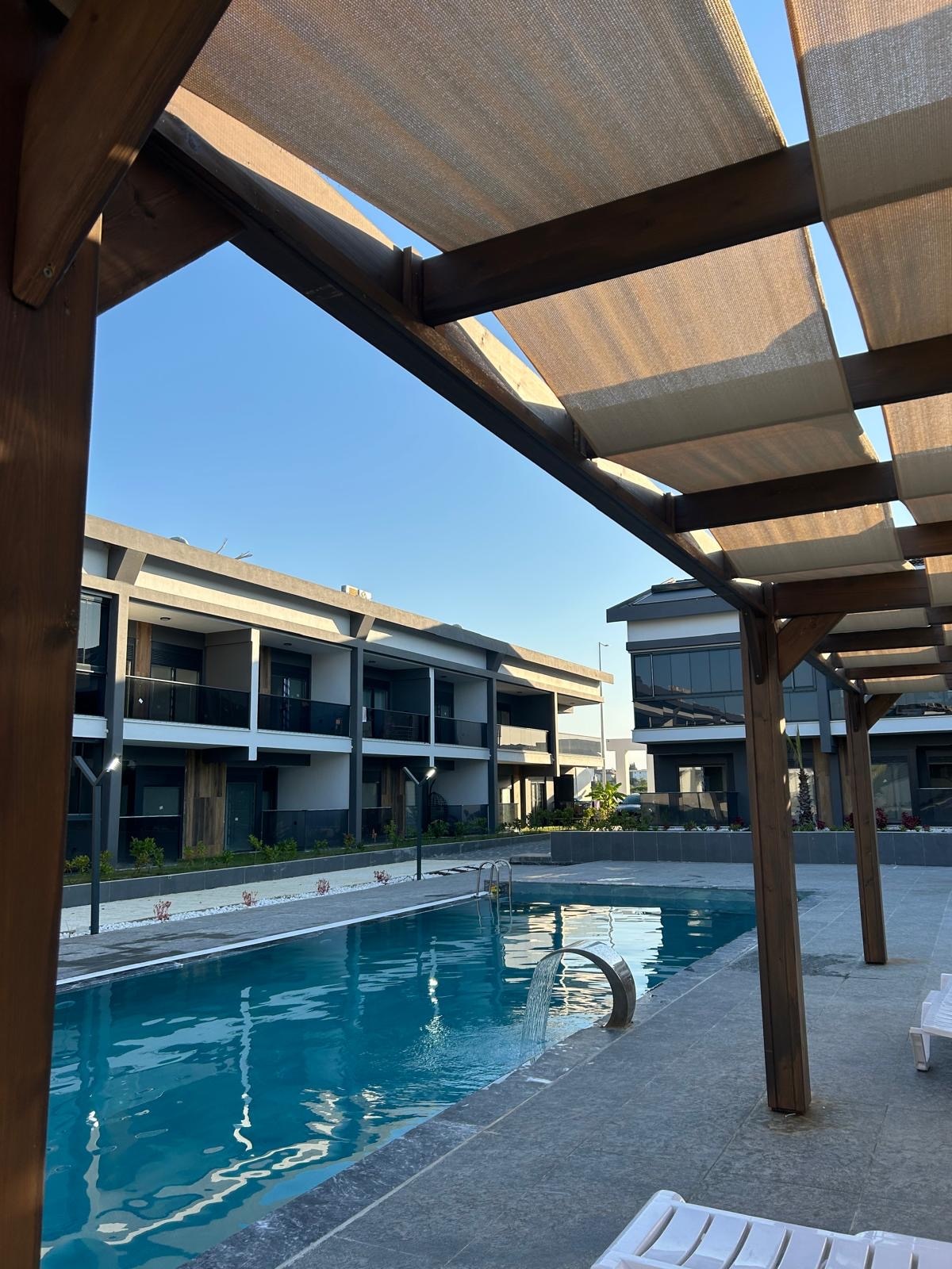 Das Apartment verfügt über 2 Zimmer: 1 Schlafzimmer und 1 Wohnzimmer mit offener Küche. Bis zu 4 Personen können sich in unserem Apartment rundum wohlfühlen. Balkon mit direktem Zugang zum Poolbereich. (Pool Mai - Oktober) Wohnanlage mit Code gesichert und 24h Videoüberwacht Öffentlicher Strand in ca. 10 Minuten zu Fuß erreichbar Supermärkte, Dolmuş, Restaurants und Bars in direkter Umgebung 1x pro Aufenthalt und Person Bettwäsche und Handtücher sind inklusive.