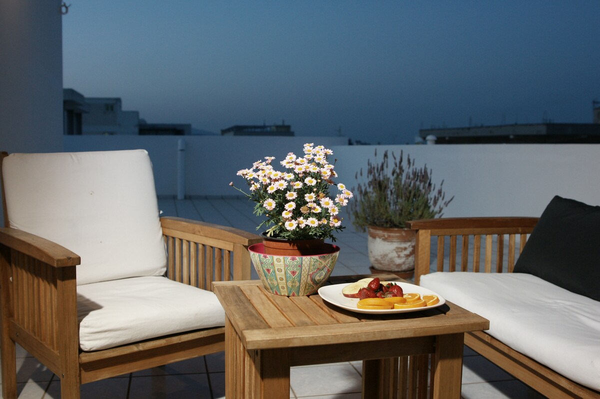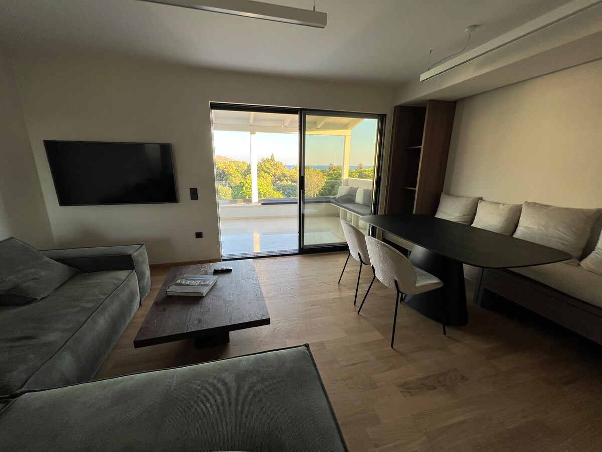 Our newly renovated holiday 45m2 apartment is stylish, minimal yet cozy to make you feel right at home. A haven of white and palest grey, the apartment is filled with natural light throughout the day. Our private 100m2 terrace will give you all the serenity and tranquility you need when on vacation by enjoying the stunning view of Vouliagmeni's Bay. Close to beaches, ski school, tennis court, basketball court, hotels, restaurants, forest, parks, 30' from Athens Centre, 30' from Athens Airport.