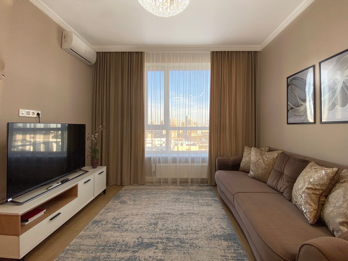 Moderne og hyggelige lejligheder i Astana. Vi er glade for at invitere dig til at tilbringe din tid i komfort og føle dig hjemme. Vi forsøgte at opretholde den samme stil i alle lejligheder, hvilket skaber en vis komfort for vores gæster. I lejligheden kan du finde alt, hvad du har brug for til madlavning, højhastighedsinternet (WI FI), SMART-TV