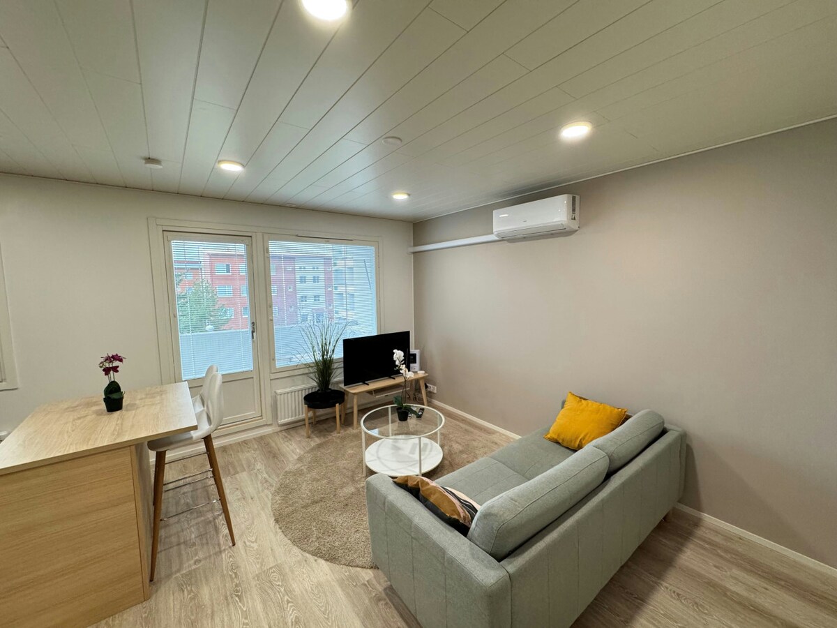 Nyligt renoveret studio, god beliggenhed, funktionelt layout. Nyt køkken, godt udstyr, parketgulve. Kotkansaari ligger inden for gåafstand lige ved siden af det fantastiske Sapokka Park-vandfald. Dette stilfulde sted er tæt på destinationer, der skal ses.