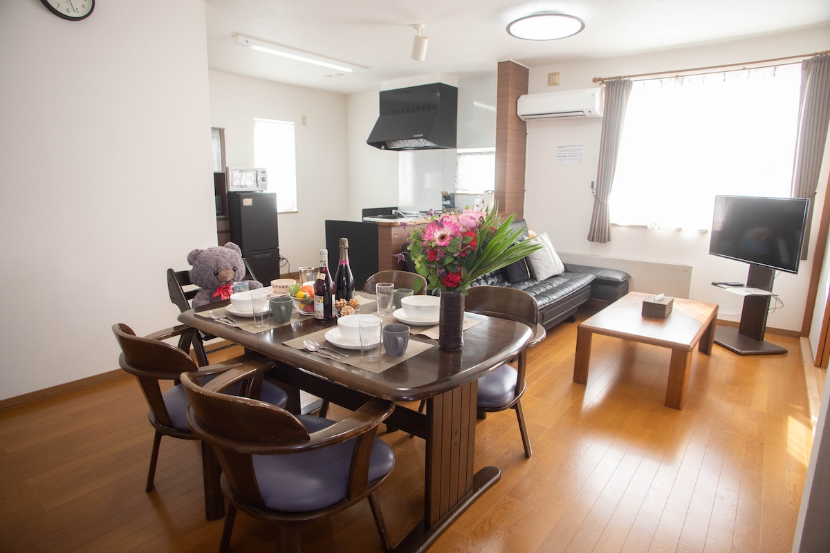 My homestay is located in Tein-ku, Sapporo-shi, near JR Teinari Station, just two kilometers from the direct line of Tein Ski, the nearest homestay to Tein Ski Resort.På dette tidspunkt er transporten også meget praktisk, det er kun 1 kilometer fra JR Tei Station, og det er muligt at komme med JR direkte fra Chitose Lufthavn uden at overføre til metroen.Beliggende mellem Sapporo Station og Otaru, tager det kun 16 minutter at komme til Sapporo Station med JR og 22 minutter til Otaru Da det ligger i Sapporo, ikke på landet, er livet relativt bekvemt, den nærmeste nærbutik er 300 meter, der er snesevis af restauranter og supermarkeder inden for tre kilometer, berømte restauranter såsom Triton og Hanamaru behøver ikke at stå i kø Omgivelserne omkring boligen er rummelige og ikke omgivet af overfyldte bygninger, huset ligger bag huset, fuld af sommer og sne om vinteren.Uanset om du er voksen eller barn, behøver du ikke at forlade Sapporo, ikke gå uden for vildmarken eller endda være langt fra jernbanetransportstoppestedet, kan du få et fredeligt tilflugtssted, sommer sommer, vintersne og nyde Hokkaido fuldt ud!