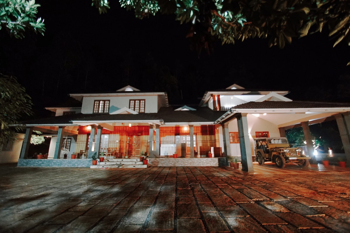 Velkommen til Nature's Peak Wayanad – vores glashytte i skandinavisk stil på en privat gård med en lille pool. Denne bolig med 3 soveværelser og 2 badeværelser omfatter en fuldt airconditioneret hovedhytte (2 soveværelser, stue og 1 fælles badeværelse) samt et separat udhus med aircondition 6 meter væk med en kingsize-seng og privat badeværelse. Nyd en privat vandretur til et udsigtspunkt og hjemmelavede måltider tilberedt af vores familie (ekstra omkostninger). Hele boligen er udelukkende din.