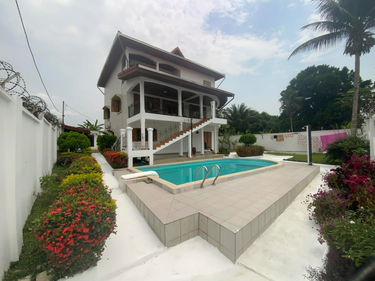 Smukt hus beliggende i hjertet af Doumbé-distriktet, mindre end 15 minutter i bil eller motorcykel fra den centrale strand i Kribi. Den har 3 store soveværelser, herunder en master suite. To badeværelser. Et fuldt udstyret køkken, en stor moderne stue, en terrasse og en gårdhave. Alt er indhegnet og sikret med kameraer og vagt.