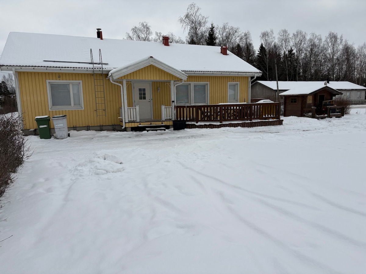 Halvdelen af et dobbelthus, der ligger lige ved Highway 67. Ca. 7 km til Teuvas centrum, ca. 20 km til Kauhajoki. Rummelig gård til biler. Saunaen, der varmer op med træer, har en god damp. Dens egne senge kan rumme 4 personer = 2 x 1 personers værelse med 120 cm senge + en hylde bagerst i stuen, hvor 1-2 personer kan sove i 80 cm senge. Eller hvis familier/par, så 120 cm i dobbeltsenge mere kompakte 2 x 2 personer, og i enkeltsengene yderligere 2 = 6 personer (angiv venligst, om dette er tilfældet).