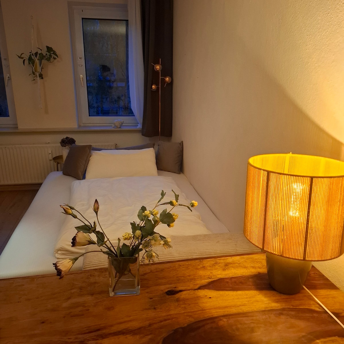 Vi tilbyder her vores 30 kvm lejlighed i Kiels centrum. Den rolige lejlighedsbygning ligger i en lille boligvej. De vedhæftede billeder giver forhåbentlig et godt indtryk af atmosfæren i værelserne. Vi bestræber os hele tiden på at holde lejligheden smuk og moderne. Fuldt udstyret køkken, internet og tv er tilgængelige! Der er en vaskemaskine i kælderen.