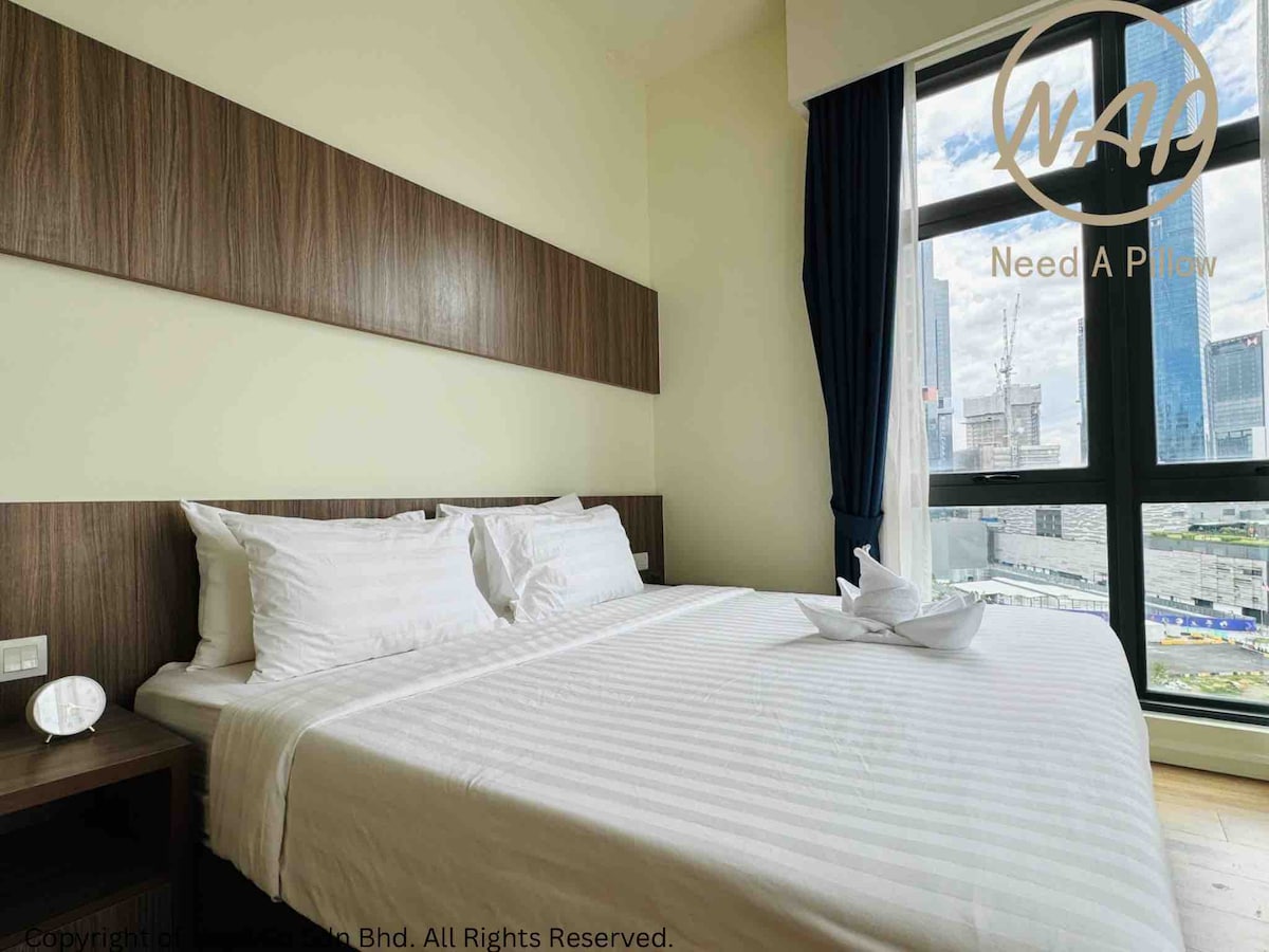 Luksuriøs hjørnelejlighed med 1 soveværelse og balkon ✨🏡 🛏️ Soveværelse: 1 1,8 m kingsize-dobbeltsenge 🛏️🛏️ for afslappende søvn Luftrenser 🌬️ til soveværelset for ren, frisk luft Højhastigheds-wi-fi – 500 Mbps for problemfri streaming og arbejde 🌐 Altan til udendørs afslapning med byudsigt 🌆 🚗 Parkering: En dedikeret parkeringsplads for at gøre det nemmere for dig Inden for 5 minutters gang: 🏙️ Sunway 163 🛍️ One Mont Kiara indkøbscenter 🏙️ Plaza Mont Kiara 🎓 Mont Kiara International School