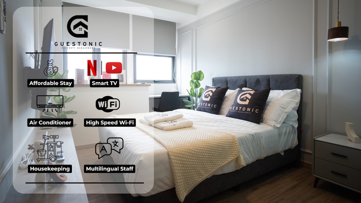 Slap af i vores studiosuite i boutique-stil, hvor stilfuldt design møder hyggelige vibes og masser af plads til at slappe af. Med en episk infinity-pool, et fuldt udstyret fitnesscenter og et afslappet kontorfællesskab beliggende lige i hjertet af KL's transportknudepunkt, KL Sentral. Monorail Tun Sambanthan ligger kun 2 minutters gang væk og forbinder dig direkte med KL Sentral og hjertet af Kuala Lumpur, hvilket gør det super nemt at udforske byen. Fantastisk til alle typer rejsende, der søger afslapning eller en sjov ferie.