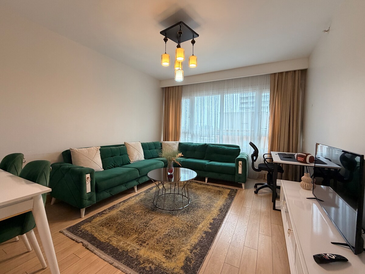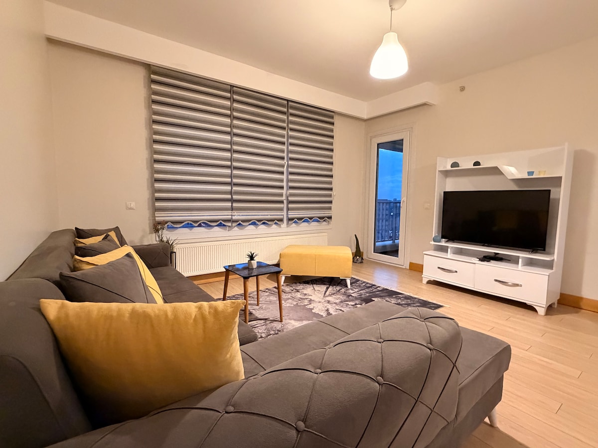 Nyd et fredeligt og komfortabelt ophold i en stilfuld og moderne bolig med fantastisk udsigt over byen. Det er det perfekte sted at slappe af og slappe af væk fra byens stress og jag. Det er også tæt på butikker og restauranter og kun 700 meter fra det nye Tema World Mall, som har mange restauranter, caféer og tøjmærker. Det er også 3 km væk fra Marmaray metrostation, Halkalı, som giver dig mulighed for at rejse i hele Istanbul, selv til den asiatiske side.