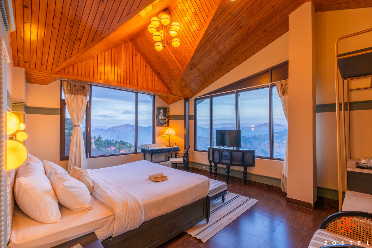 Stone-themed classic cottages equipped with air conditioning, bathtubs, and private balconies offering breathtaking panoramic views of the Himalayan ranges.