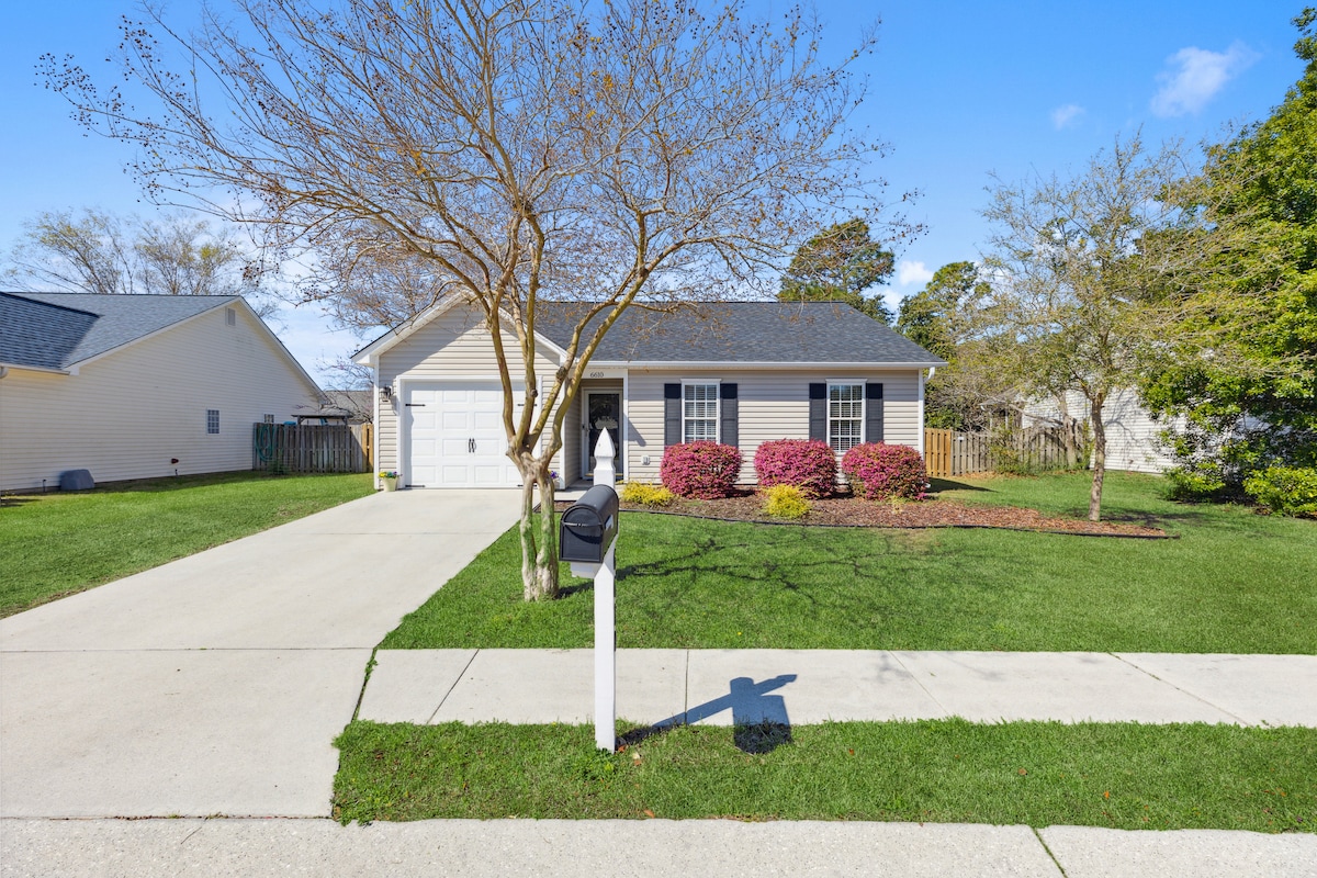 Velkommen til Sweet Hideaways på Oak Island! Denne bolig med 3 soveværelser og 2 badeværelser har et udendørs brusebad og en fuldt indhegnet gårdhave. Nyd strandudstyr som stole, parasoller, boogieboards og en gorillavogn til en nem tur til kysten. Familievenlig med en høj stol, pak og leg, legetøj, legehuse og et sjovt, tilpasset vægmaleri! Kun 1,1 km til stranden og 1 blok til ICW. Gå til Middleton Park og splash pad på få minutter! Bekvemt beliggende tæt på restauranter og butikker.