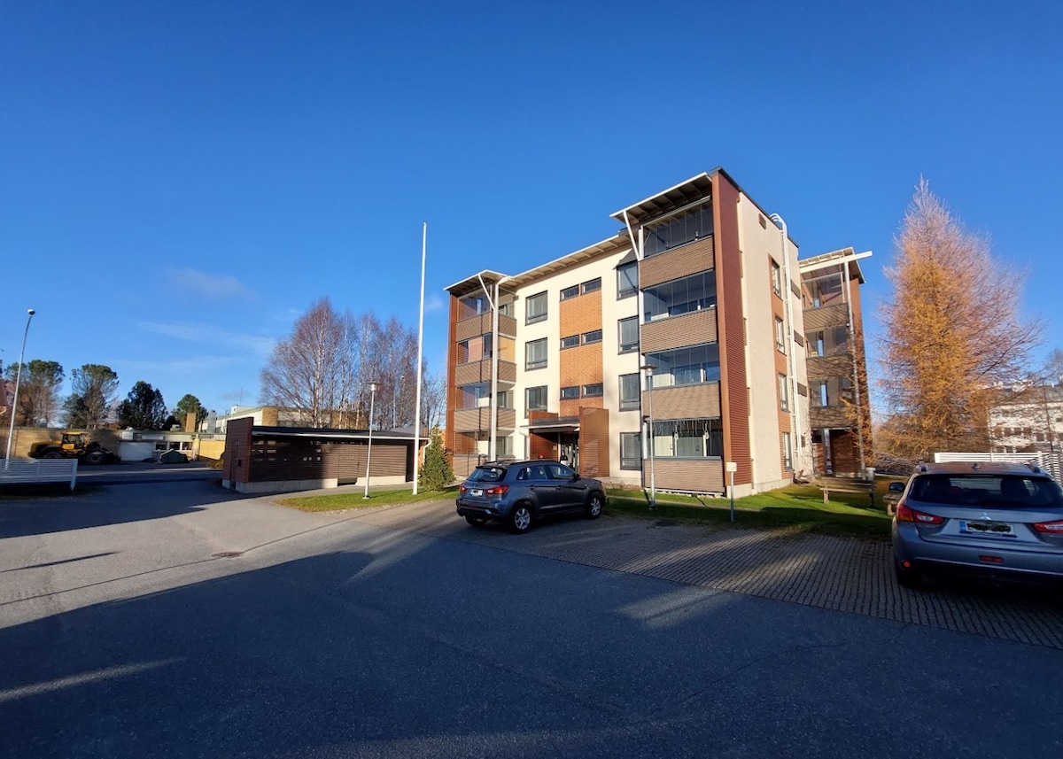 54 kvadratmeter lejlighed i hjertet af byen, 26 km til Ruka. Lejligheden ligger på 2. sal, huset har elevator. Gratis parkering med varmestang og wi-fi. Prisen inkluderer sengetøj, håndklæder(1 stor og 1 lille/person) og slutrengøring. Nærliggende busstation og andre tjenester såsom butikker, restauranter, loppemarkeder , lægecenter. Lejligheden har en dobbeltseng og en sovesofa , der kan forlænges, efter anmodning, en rejseseng til en baby.