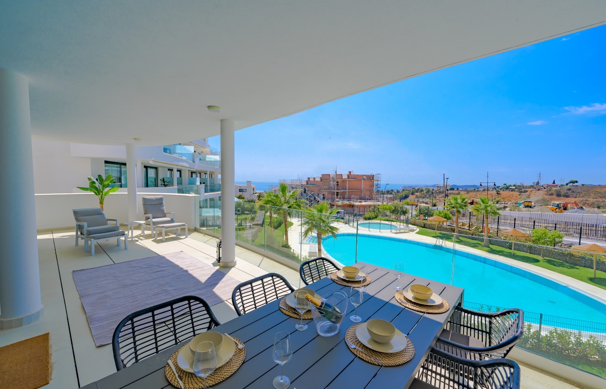 🏝Benalbeach🏖 Strand, swimmingpools, terrasse, haver.