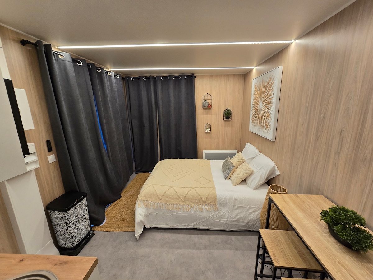 33 m2 lejlighed i et roligt og fredeligt miljø, tæt på Futuroscope og alle bekvemmeligheder (Super U, tankstation, tobak, bageri, apotek, bank, pizzeria). Helt nyrenoveret. En rummelig stue med et fuldt udstyret køkken. Et smukt uafhængigt soveværelse samt et separat badeværelse og toilet. En indgang med en port, så du kan parkere din bil sikkert. Samt et udendørsområde, der er under opførelse Meget rolig beliggenhed