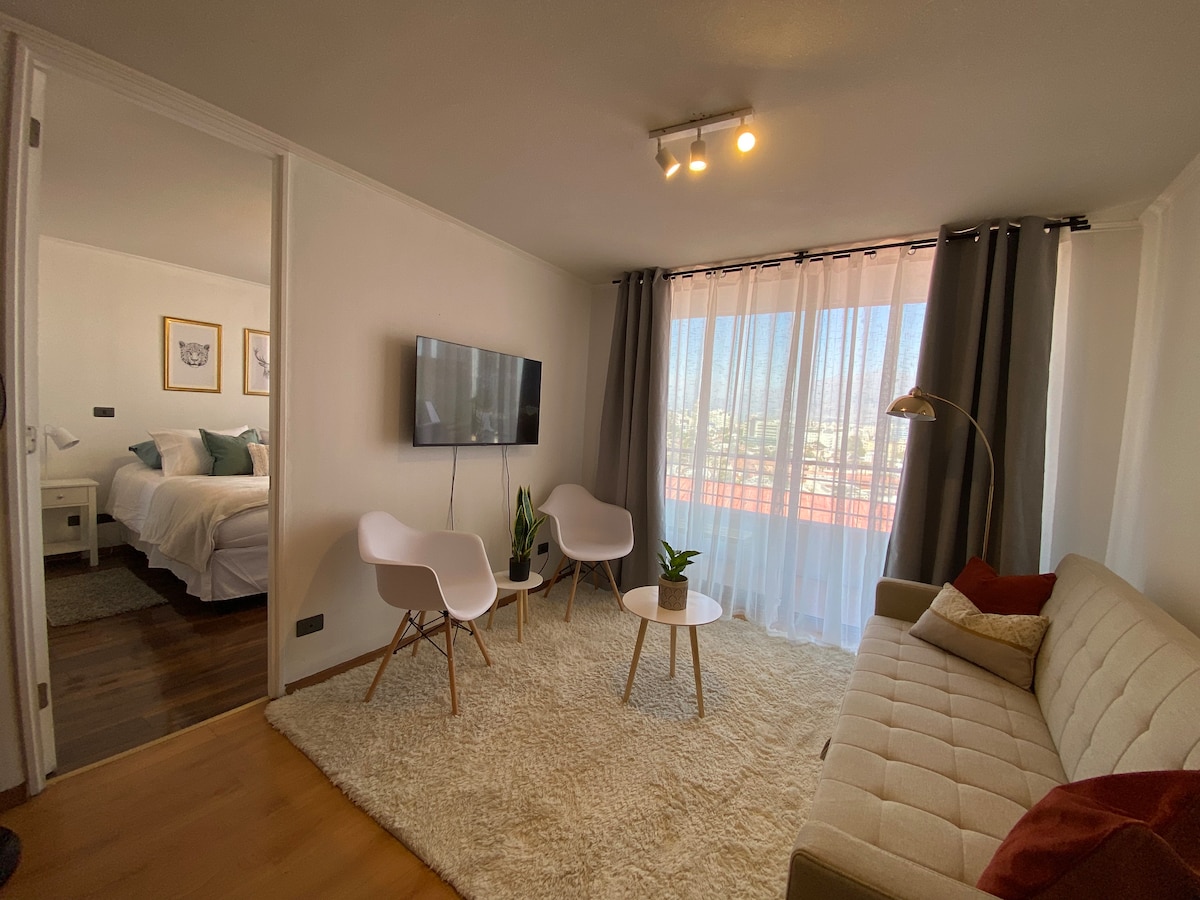 Modern apartment in Bellavista/Providencia, just steps from Metro Salvador. Perfect for couples or business travelers. Enjoy ultra-fast WiFi (561 Mbps), a bright bedroom with a double bed, a fully equipped kitchen, a cozy living room, and a private balcony with greenery views. The building offers a laundry room, elevator, and 24/7 security. Excellent location near San Cristóbal Hill, Patio Bellavista, and restaurants.