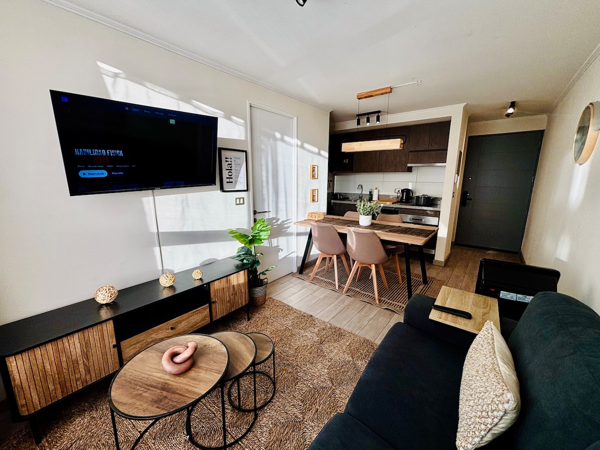 Nyd et midlertidigt ophold i en ny lejlighed, på et roligt sted og tæt på Lo Ovalle metro og komfortabelt udstyret, så du kan få en behagelig tid. Den har privat parkering, sikkerhedskameraer, en spektakulær swimmingpool og en moderne grill på tagterrassen og en minimalistisk indretning, der bidrager til afslapning, med pæne og velordnede rum