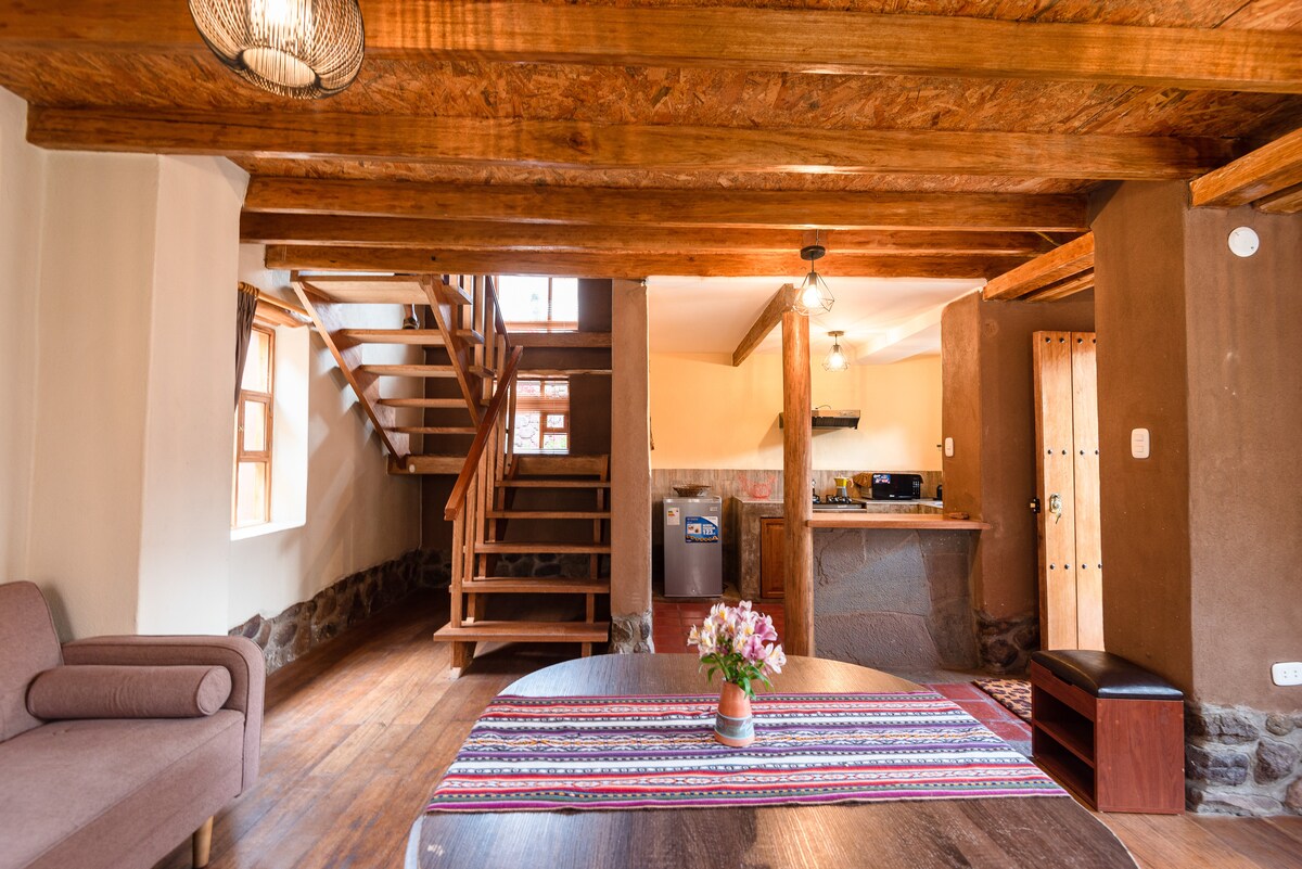 Vores hus er en del af en lejlighed beliggende i Huarán - Calca, i Inkaernes hellige dal, det er helt sikkert, og dets beliggenhed er uovertruffen; med bil er det 25 minutter fra Pisaq, 12 minutter fra Urubamba og 20 minutter fra Ollantaytambo (togstation til Machupicchu). Det er et skovområde og har nærliggende ruter til vandreture (bjerge, vandfald og laguner), kanosejlads og cykling (cykelsti ved siden af Urubamba-floden).