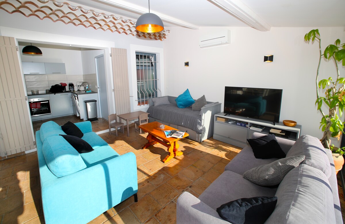 Slap af i denne smukke nye 24m lejlighed + terrasse med havudsigt og havn med privat parkeringsplads. Udstyrret køkken, reversibel aircondition, sovesofa, håndklæder og sengetøj, velkomstpakke. Perfekt til et par (barneseng til rådighed). Adgang til swimmingpool om sommeren. 5 minutter til fods fra strande og havnen! Du kan nyde smukke vandreture og smukke gåture langs hele den blå kyst Carry, Ensues, Niollon-bugten... Wi-fi og Netflix til rådighed.